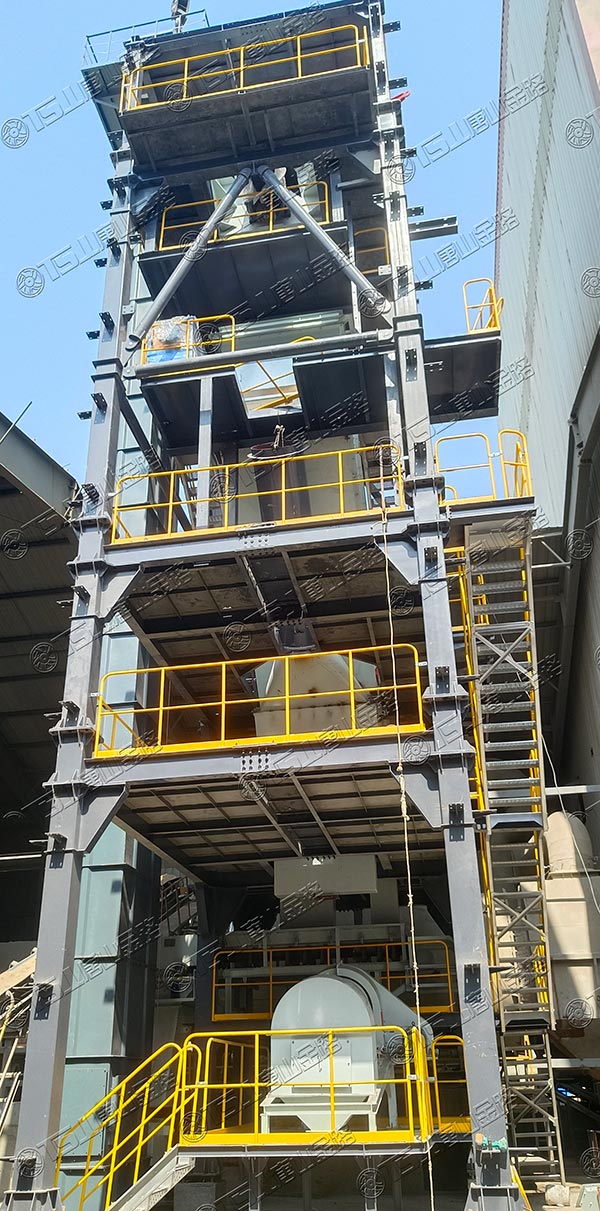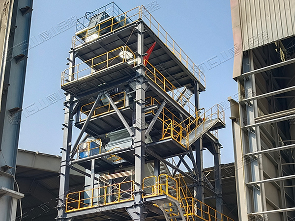 這套V8-100干法制砂樓,總投料量為100噸,整條生產(chǎn)線設備選型為:制砂選粉一體機、高頻篩、無動力選粉機、粗細粉分離機、加濕拌合機等。